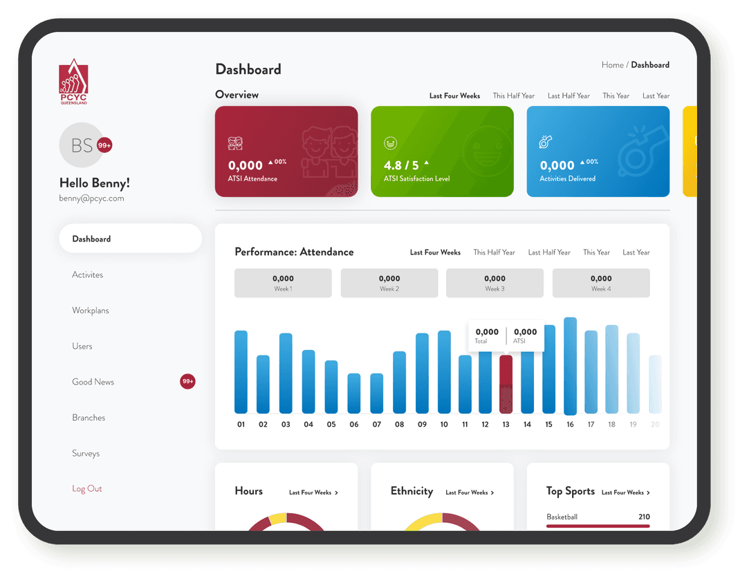We began working with PCYC to bring their large data processes into the digital and mobile age, to reduce reporting time and improve the user experience.